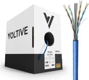 Voltive Cat6 Riser (CMR), 1000ft, Blue - Solid Bare Copper Bulk Ethernet Cable - UTP - 600MHz - UL Certified & ETL Verified
