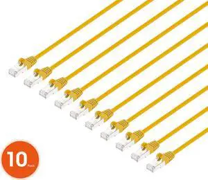 Intellinet Cat8.1 U/FTP Slim Network Patch Cable, 14 ft., Yellow, 10-Pack, 40G, 2 GHz, 100% Copper, 30 AWG, RJ45, Stranded, Snag-free, Gold-plated Contacts- Brand: Intellinet Network Solutions