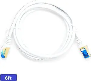 QualGear RJ45 Cat 7 Ethernet Patch Cable, 10Gpbs High-Speed Cable, 600MHz, Triple-Shielded, 6 ft, White, Round