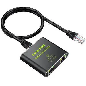 LiNKFOR Ethernet Splitter 1 in 2 Out,1000Mbps High Speed Splitter RJ45 Network Extension Connector with USB Type C Cable Gigabit Ethernet Switch Network Sharing for Cat8 Cat7 Cat6 Cat5 Cat5e
