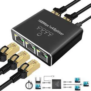 Gigabit Ethernet Splitter 1 to 4 High Speed, 1000Mbps LAN Splitter (4 Devices Simultaneous Networking), RJ45 Splitter Adapter with USB Power Cable, Internet Splitter for Cat5/5e/6/7/8 Cable