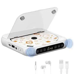 CD Player with Built-in Speakers Portable Bluetooth Input&Output Desktop CD Players for Home with Screen Display, Ambient Lighting, FM Radio, White Noise Mode, Remote Control, USB Type-c, White