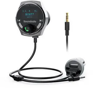 Bluetooth Aux Adapter for Car, Aux Bluetooth Receiver with USB Car Charger, Support Music/Hands-Free Calling/Home Stereo, Enhanced Mic/LED Display