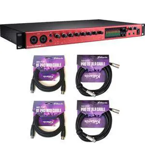 Focusrite Clarett+ 8Pre Rackmount 18x20 USB-C Audio/MIDI Interface Bundle with Kellards MID-P10T Pro MIDI to MIDI Cable 10 Feet (2 Pack), Kellards XLR-P20T Pro 20 ft XLR Microphone Cable (2 Pack)