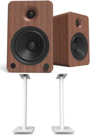 Kanto YU6WALNUT 200W Bookshelf Speakers with Bluetooth - Walnut (Pair) with Kanto SP26PLW 26" Fixed-Height Stands for Bookshelf Speakers - White (Pair) (2022)