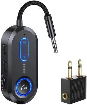 Bluetooth 5.3 Transmitter Receiver for Airplane & TV Headphones, 3.5mm Bluetooth Audio Adapter for Car Hands-Free Calling/Home Stereo/PC, 14H Battery & Low Latency