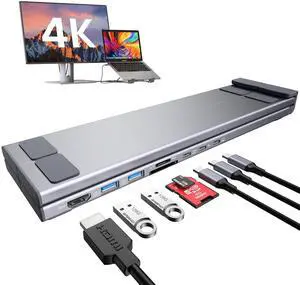 USB C Hub Stand for MacBook Pro, 10 in 1 Adapter for MacBook Air Docking Station with 4K 60Hz HDMI, RJ45 Gigabit Ethernet, SD/TF Card Reader, 4 USB 3.0 for iPad/Dell HP/Surface/Lenovo Laptop Dock