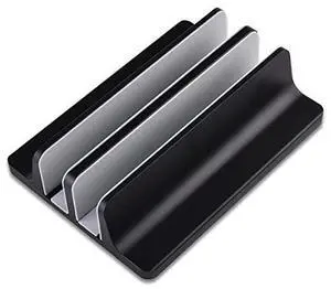 Vertical Laptop Stand Desktop Aluminum MacBook Stand with Adjustable Dock Size Compatible with MacBook Notebooks Surface Chromebook and Gaming Laptops Double Slots Black