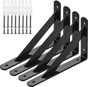 Heavy Duty Shelf Brackets 8 in X 5 in Wall Mount L Steel Bracket for Floating Shelf Black 4 Pack