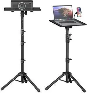 Projector Stand Tripod Adjustable, Laptop Height from 23.5 to 46.5 inches with Gooseneck Phone Holder, Floor for Office, Home, Stage, Studio, DJ Racks Holder Mount, 23.5inch-46.5inch