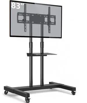 Mobile Rolling TV Cart with Locking Wheels, Height Adjustable Floor Stand for 32-83 Inch Screens, Black