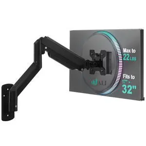 Computer Monitor Wall Mount for 17 to 32 Inch Screens, Single Monitors Mount Holds up to 22lbs, Fully Adjustable Gas Spring Wall Mount Monitor Arm, 75x75/100x100mm VESA Mount (GSWM001), Black