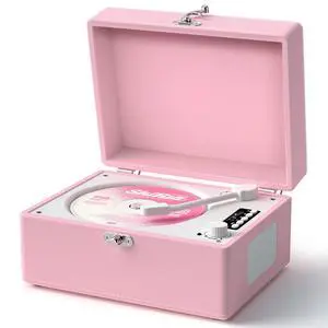 CD Player Portable Bluetooth, Pink Retro CD Player Leather for Home Music Player, Rechargeable Battery & Built-in Speakers, USB & AUX Playback, Festival Gift for Home, No Remote Control(Light Pink)