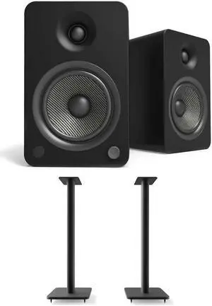 Kanto YU6MB 200W Bookshelf Speakers with Bluetooth - Matte Black (Pair) with Kanto SP26PL 26" Fixed-Height Stands for Bookshelf Speakers - Black (Pair) (2022)