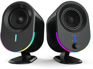 Eyesoul Computer Speakers, Bluetooth PC Speakers, AC Powered Gaming Speaker with 3 EQ Modes, Stereo Speakers with 6 RGB Modes, Aux in, Headphone, USB port Speaker for Laptop/Desktop/TV, 2*15W, 2.0 CH