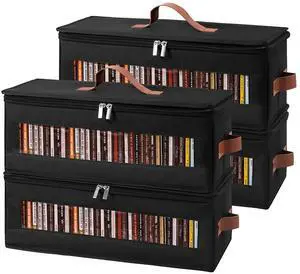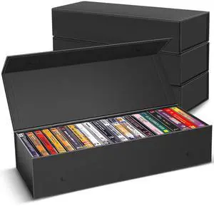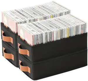 Wanapure CD Storage Boxes-4 Pack CD Case Holder Holds Up to 80 Full Jewel Cases, Foldable Storage Cabinets with Handle, Black