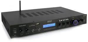 2-Channel Bluetooth Home Stereo Amplifier - 250W Wireless Audio Receiver, Karaoke Optimized: Dual Mic In with Echo, Mic Talk-Over, FM Radio, USB-A MP3 Player, RCA, AUX, Remote Ctrl - PTA24BT