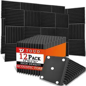 12 Pack Acoustic Panels Sound Proof Foam Panels for Wall 12"x12"x1", Flame Retardant Wedge Acoustic Foam, High-Density Sound Absorbing Panels for Home Studio(Black, 1" Thick 12 Pack)