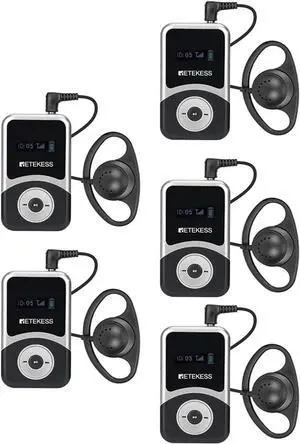 Retekess T130S(2nd Gen T130) Wireless Tour Guide System Receivers, Tour Guide Headsets, 100m/328ft, 20H, Translation Equipment for Court (5 Receivers)