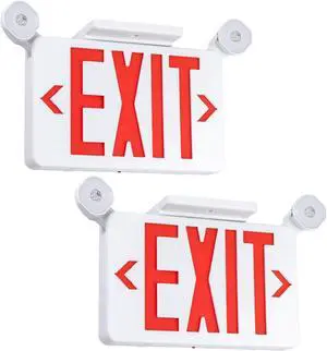 Red Exit Sign with Emergency Lights, 2 Adjustable LED Heads and Backup Battery, UL 924, AC 120/277V, Commercial Hardwired Exit Light for Business, 2 Pack