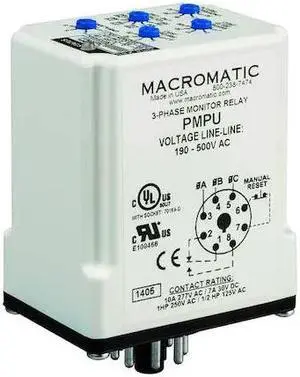 MACROMATIC PMPU-FA8 3 Phase Monitor Relay,SPDT,500VAC,8 Pin