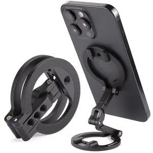 Dual Magnetic Ring Phone Mount - Foldable 360° Rotation CNC Aluminum Stand,1/4" Screw,Cold Shoe Interface, Hands-Free Holder for Live Streaming, Selfies & Multi-Device Use