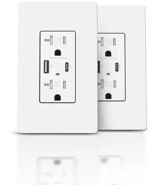 USB Receptacle Outlet, 30W Speedy Charge Outlet with Type C&A Ports, 20Amp TR Receptacle Plug, USB Electrical Outlets for iPhone/iPad/Samsung/LG/HTC, UL Listed, White, 2 Pack