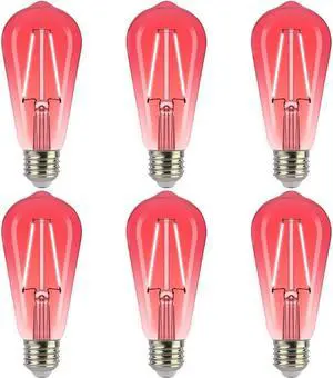 Jaspertronics ST19/ST58 Vintage LED Edison Bulbs - 2700K Red LED Filaments Decorative String Bulbs 2W (25W Eqv) E26 Base Energy-Efficient Non-Dimmable Indoor & Outdoor Use - 6 Pack