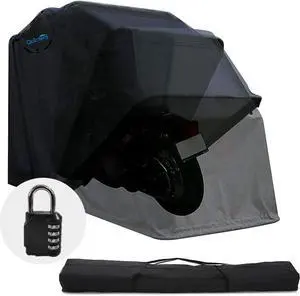 136"x 54" Motorcycle Storage Shelter with Code Lock & Carry Bag Heavy Duty Vehicle Shed Cover Garage Tent with 2 Roll-Up Side Windows - Black