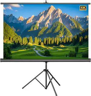 Tripod Projector Screen with Stand 60", 72" 16:9 4K Hd Projection Screen Stand Wrinkle-Free Height Adjustable Portable Screen for Projector Indoor Outdoor for Movie, Home Cinema, Gaming,60