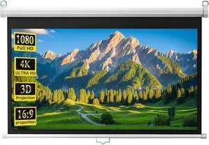 60 in Projector Screen Manual Pull Down, 16:9 4K 1080P HD Portable Wrinkle-Free Lightweight Movie Screen for Home Theater Indoor Outdoor Backyard Party