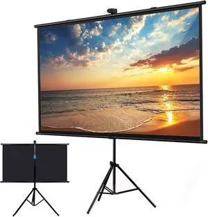 Tripod Projector Screen with Stand, Mobile Projection Screen, Lightweight Carry & Easy Adjustablle, Portable Tripod Projection Screen for Projector Indoor & Outdoor for Movie, Home Cinema, Office(16:9