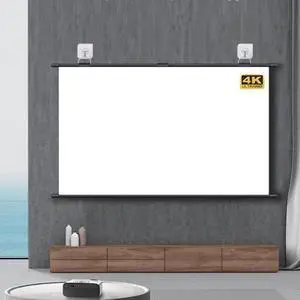 Home Wall-Mounted Projection Mobile Screen Simple Hook Punch-Free Portable Projector Screen 170 Degree Large Viewing Indoor Use 60/70Manual Pull Down Projection Screen, 2 Styles(Metal,16:9 72in)