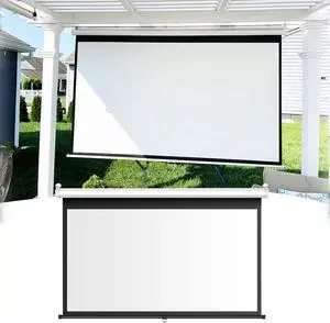 30" 40" 50" Pull Down Projector Screen Manual Projection Screen HD 4K Wall Mounted Movie Screen for Indoor Home Theater and Office(16:9,72in)