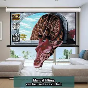 72in Projector Screen Manual Pull Down, Outdoor Movie Screen Wall Mounted Projection Screen Portable 4K HD Screen for Home Theater(16:9,60inch)