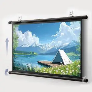 Manual Pull Down Projector Screen 60" 72" 84" 100" 4:3 Anti-Crease HD Projection Screen, Slow Rewind, Fiberglass, Ultra HD 4K/3D, Portable for Indoor & Outdoor Home Theater