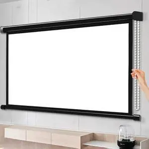 Pull Down Projector Screen White, Portable Movie Screen 16:9 Hd 4K Foldable Anti-Crease Projection Screen, Wall & Ceiling Mounted Hd Projection Screen Portable Projector Screen,40", 50",4:3-72