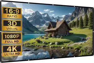 Portable Projector Screen, 16:9 Foldable HD Movie Screen, Wrinkle-Free Projection Screen for Home Theater, Office, Presentation, Outside, Camping, Party(120 inch)
