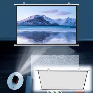 Portable Lightweight Hanging Matte White Projector Surface, Manual Pull-Down Projector Screen,Wall & Ceiling Mount Projection Screen, 16:9 Ratio Home Theatre Cinema Screen,4:3-60