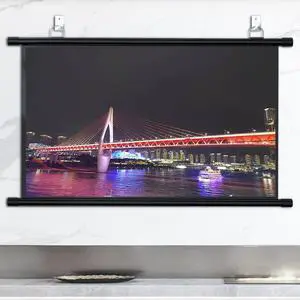 Manual Pull-Down Projector Screen, Universal 40" 50" 60" Roll-Down Projection Screen, Portable Home Theater Movie Screen for Indoor Outdoor (White,72'' 16:9)