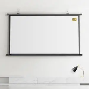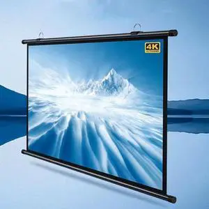 Projector Screen Portable Indoor/Outdoor Movie Theater Screen, Wall Mounted Projector Screen 178° Viewing Angle Movie Widescreen Viewing Movie Screens, Black Backing Manual Pull Down Projector Screen(