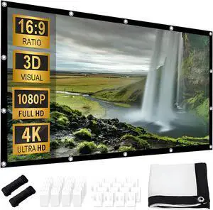 Foldable Portable Projector Screen - 16:9 HD 4K Movie Projector Screen - for Home Theater, Party, Office, Classroom, Double Sided Projection for Home Theater(100 inch)