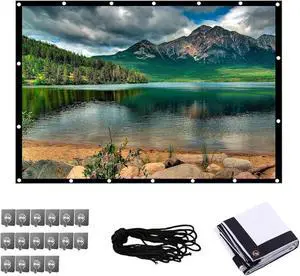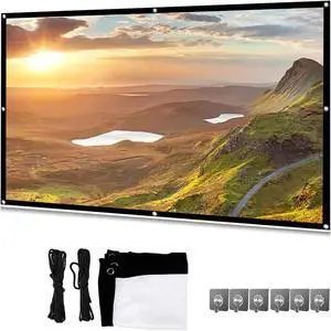 Projector Screen, Foldable Portable Projector Movies Screens, 60/72/84/100/120/150/180/200 Inches 4:3/16:9 Thicken Portable Non Crease Soft White Polyester Projector Curtain(16:9,200 inch Screen)