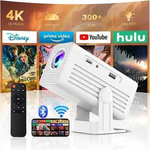 Mini Projector with Wifi6 and Bluetooth5.4, Portable Projector 4K Support, Smart Proyector with 260ASIN & Auto Keystone, 1080P Small Proyector for Bedroom Movie, Home Theater, Outdoor