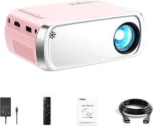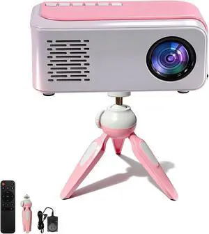 Mini Projector, HD 1080P WiFi Video Projector, Portable Outdoor Projector with Tripod, Gift for Kids, Home Theater Movie Phone Projector Compatible with USB, AV, Smartphone/Tablet/Laptop (pink)