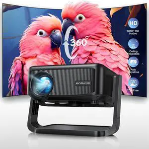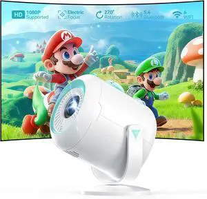 Smart Mini Projector with Android 14 OS, 1080P/4K/8K Video Decoding, WiFi 6 & Bluetooth 5.4, 270° Rotatable Stand, Auto Vertical Keystone, Portable Proyector for Bedroom & Home Entertainment