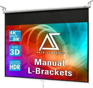 Akia Screens 110 inch Projector Screen Pull Down 4:3 Manual, Ceiling Mount or Wall Mount Retractable Projection Screen with 10 inch Bracket White, AK-M110V1 and AK-ZLB10W
