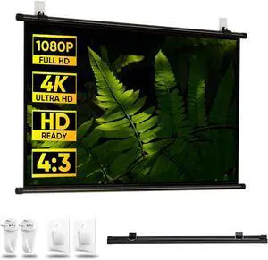 Screens Manual 30", 40", 50", 60", 72", Projector Screen Pull Down Manual 4K Hd Ceiling Wall Mount, 4:3, 16:9 Portable Projection Screen for Indoor Movie Home Theater Office,4:3-60