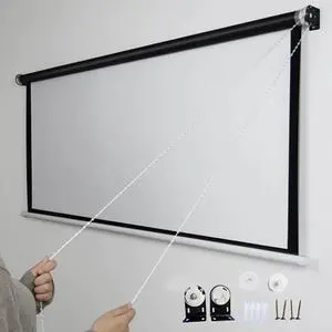 60inch 72inch Home Theater Projector Screen HD 4K Manual Pull Down Projector Movie Screen Portable Hanging Projection Screen(72inch(16:9))