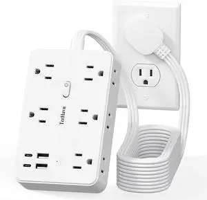 DUKVI Surge Protector Power Strip with 10 Widely-Spaced Outlets & 6 USB(2USB C) Ports, 6ft Flat Plug Extension Cord Wall Mountable, Desktop Charging Stations for Smartphone Tablet Laptop